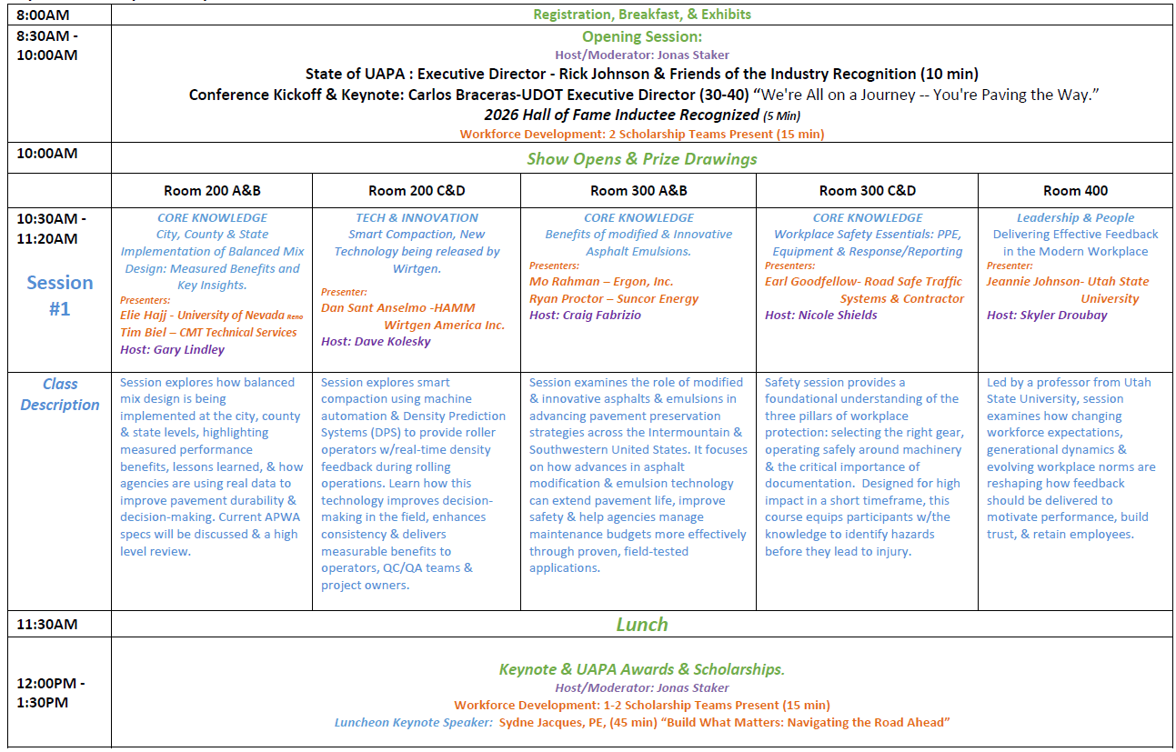 We are honored to welcome nationally recognized experts presenting on topics that directly impact our industry and our state. Cities and counties across Utah will benefit from the insights, innovations, and best practices shared throughout the event.