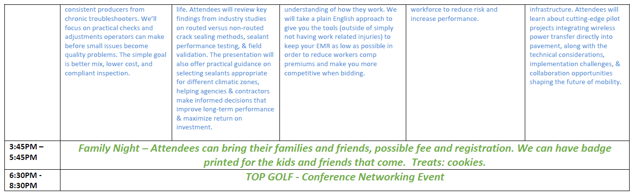 Whether you want to showcase large equipment, reserve a booth, or attend for the education and speakers, this is the conference to learn all things asphalt and connect with professionals statewide. Engage with industry leaders, explore the latest technologies, and network with contractors, engineers, agency personnel, field professionals, and suppliers during this two-day event focused on learning, connection, and growth.