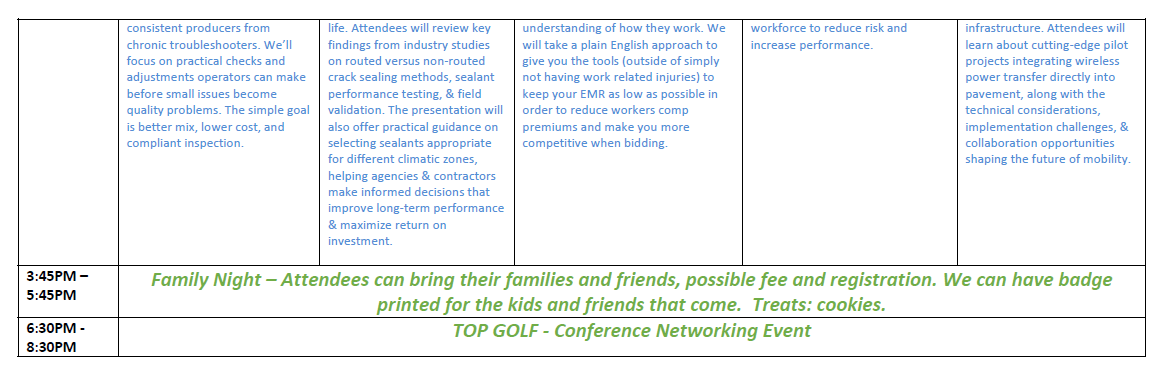 Whether you want to showcase large equipment, reserve a booth, or attend for the education and speakers, this is the conference to learn all things asphalt and connect with professionals statewide. Engage with industry leaders, explore the latest technologies, and network with contractors, engineers, agency personnel, field professionals, and suppliers during this two-day event focused on learning, connection, and growth.
